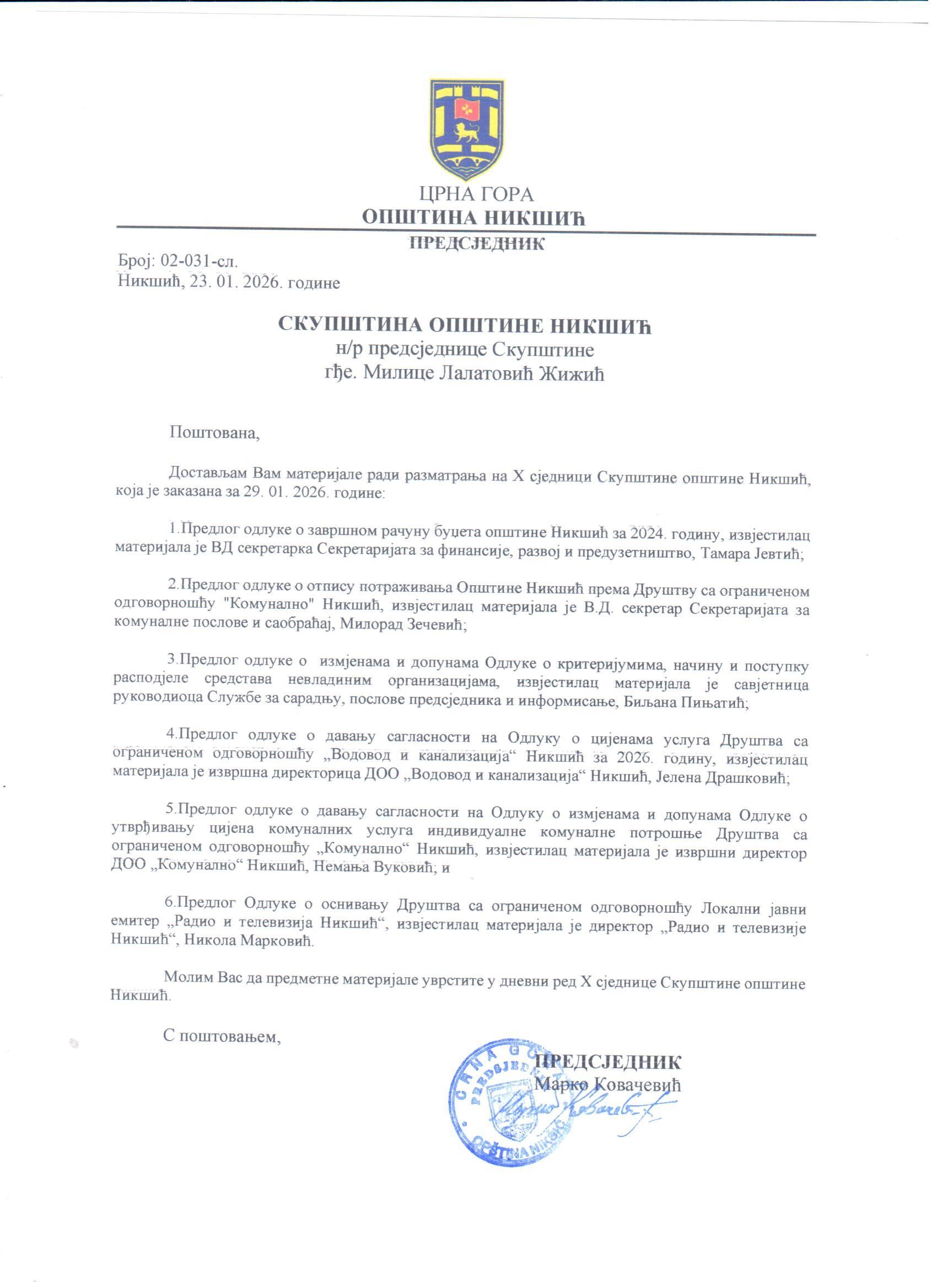 1. Saziv, zapisnici, propratni akt
